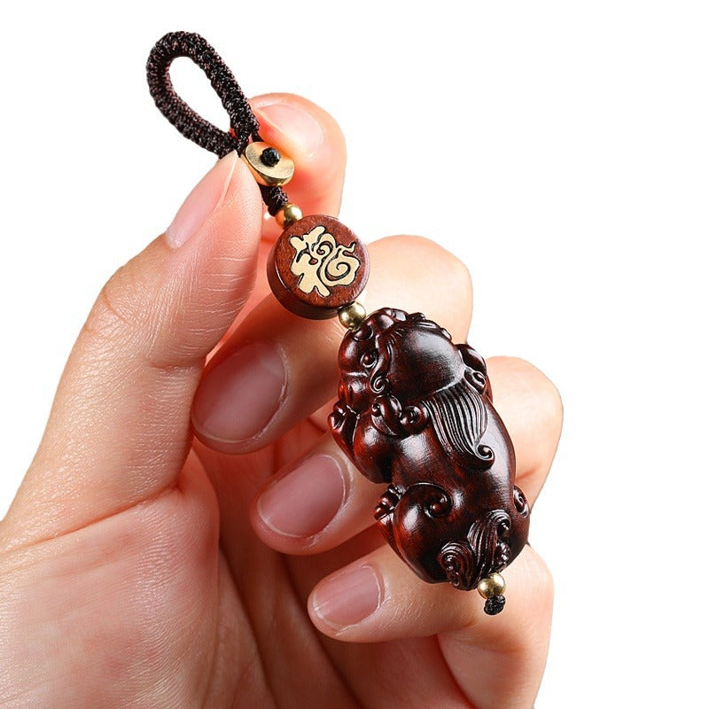 Harness the potent energy of Pi Yao, the revered mythical creature of Feng Shui, known as the ultimate guardian of wealth and a powerful protector against negative influences. This exquisite keychain is meticulously hand-carved from genuine Red Sandalwood (Zi Tan), a sacred wood long cherished in spiritual traditions for its ability to purify energy and amplify intentions.