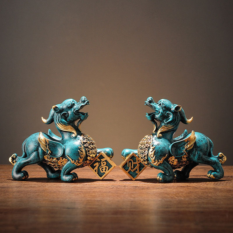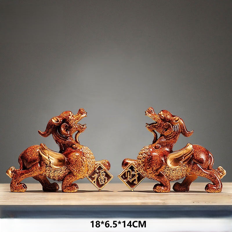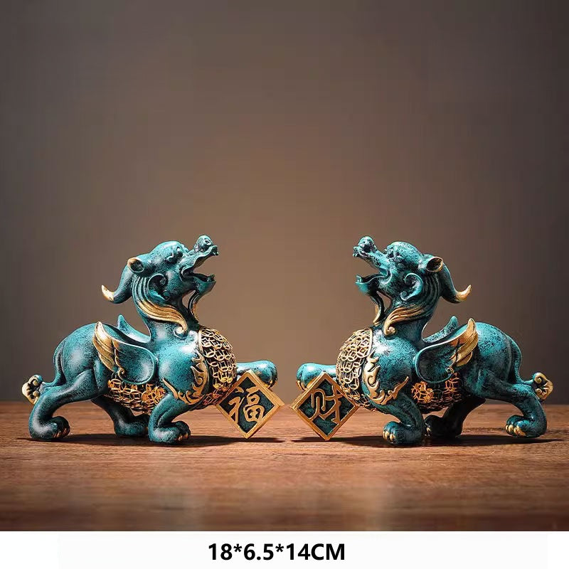 Invite powerful prosperity and unwavering protection into your space with this hand-finished pair of authentic Pi Xiu statues. In Feng Shui, Pi Xiu is a revered celestial creature known for its voracious appetite for wealth and its ability to guard against misfortune and negative energy. This majestic pair, crafted with intricate detail, serves as a potent symbol to attract abundant opportunities, safeguard your income, and promote harmony.