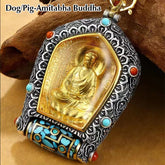 Tibet Chinese Zodiac Natal Buddha Thangka Prosperity Rotatable Dzi Bead Necklace Pendant