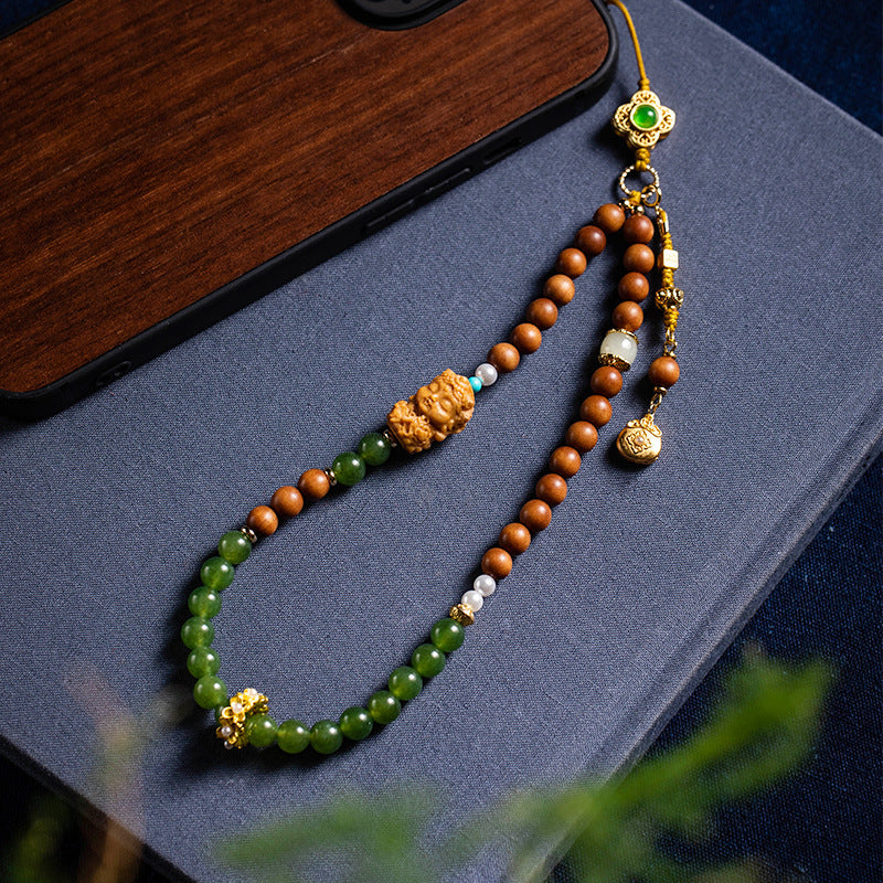 Lleva contigo un símbolo de prosperidad y tranquilidad a todas partes. Nuestro amuleto para teléfono, elaborado meticulosamente, combina la energía relajante de la calcedonia con el aroma espiritualmente arraigado del sándalo sagrado.