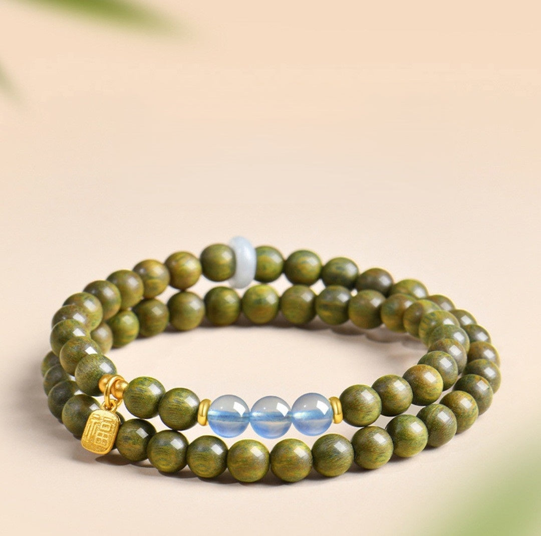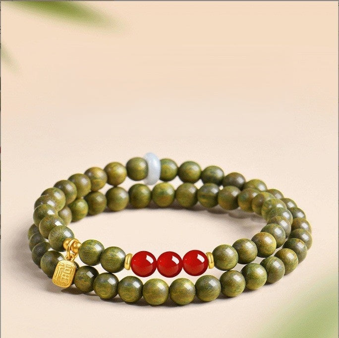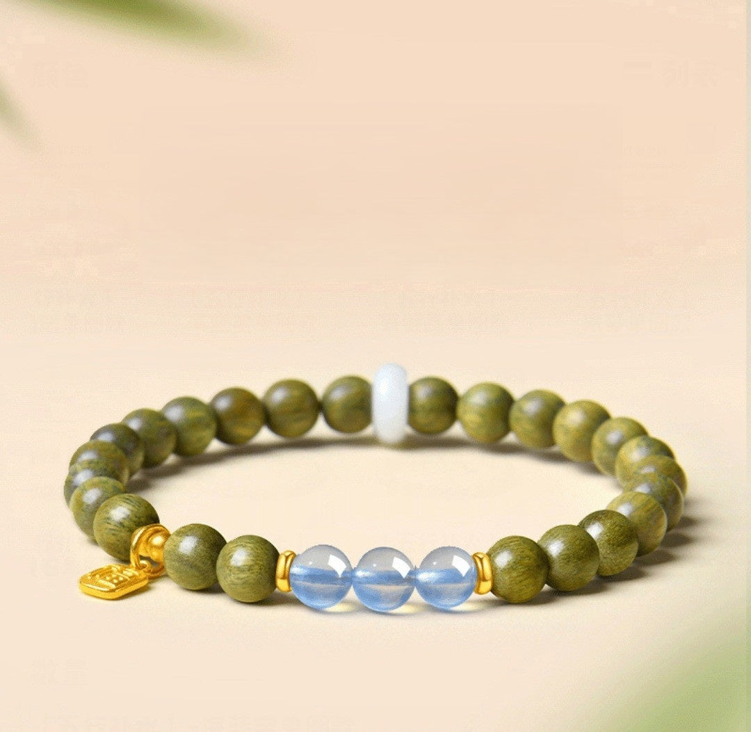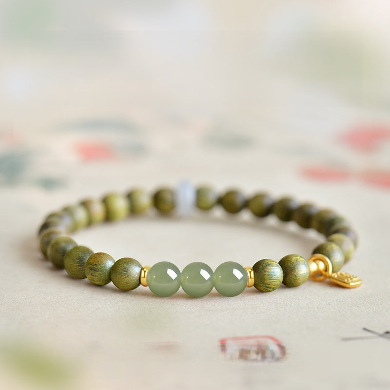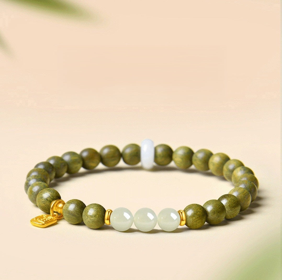 Adoptez la sagesse ancienne avec notre bracelet en bois de santal vert naturel et jade Hetian. Conçu pour la pleine conscience et l'énergie positive, ce bracelet artisanal en perles de bois allie le parfum apaisant du bois de santal aux propriétés protectrices du jade. Connu dans la pratique du Feng Shui comme un puissant porte-bonheur pour l'abondance et l'équilibre, il sert de rappel quotidien de vos intentions. Ce bijou spirituel unisexe constitue un cadeau significatif pour la méditation ou un talisman personnel pour la bonne fortune. Découvrez la paix et l'harmonie à chaque fois que vous le portez.