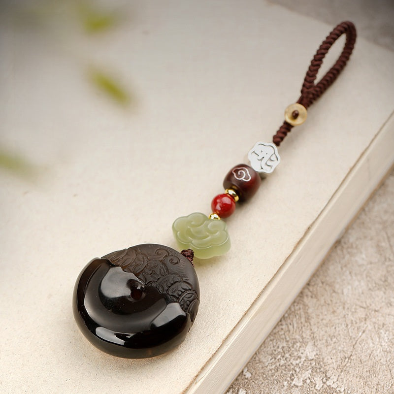 Découvrez la sagesse ancestrale avec notre porte-clés Pixiu des 12 signes du zodiaque en obsidienne glacée naturelle, une pièce unique, minutieusement confectionnée à la main pour les passionnés de Feng Shui. Ce porte-clés est orné d'une authentique pierre d'obsidienne glacée de haute qualité, réputée pour ses puissantes propriétés protectrices et sa capacité à absorber les énergies négatives. Au centre, un Pixiu finement sculpté représente une créature céleste hybride, symbole de richesse et de prospérité en Feng Shui, et qui protège son propriétaire du mal. Autour du Pixiu se déploient les 12 animaux du zodiaque chinois, conférant à ce porte-clés une résonance universelle. Sa texture translucide, évoquant la glace, lui apporte une touche d'élégance, faisant de ce porte-clés un objet à la fois spirituel et raffiné. Portez-le avec vos clés ou accrochez-le dans votre voiture pour attirer le Chi positif, la prospérité et la protection au quotidien. Un cadeau symbolique pour toutes les occasions, alliant patrimoine culturel et bienfaits métaphysiques.
