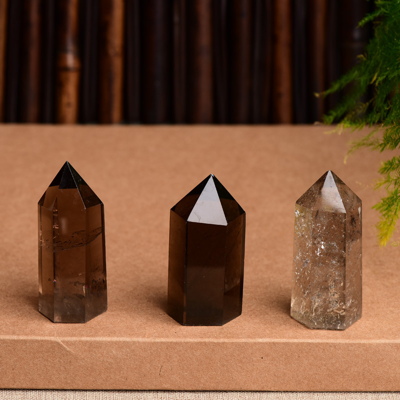 En Feng Shui , le quartz fumé est considéré comme un élément « terre yin » qui neutralise le Qi chaotique ou stagnant, notamment dans les espaces affectés par les champs électromagnétiques (CEM), le stress ou les turbulences émotionnelles. Sa forme pointue agit comme un générateur d'énergie : elle attire les énergies dispersées ou négatives par sa base et les transmute en Qi calme et stable, émis par sa pointe. Placez-le dans votre bureau, votre chambre ou près de vos appareils électroniques pour créer un havre de clarté et de sérénité.