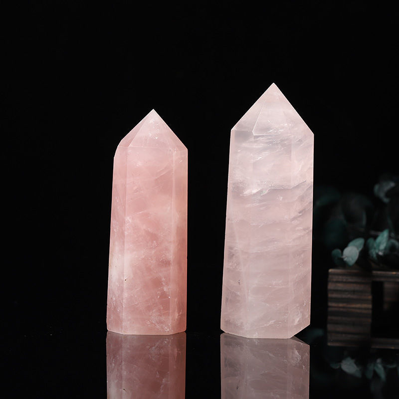 Pilier de cristal, cristal rose, pilier de cristal rose, cristal d'amour, pilier de cristal Feng Shui, tour de quartz rose