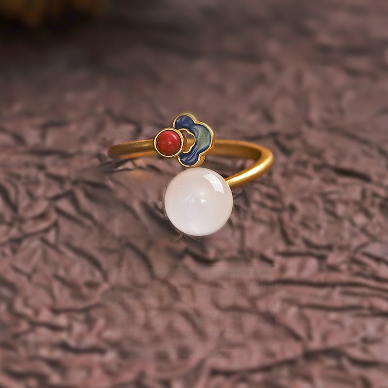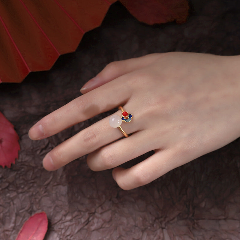 L'anneau en or sterling est finement travaillé avec un motif traditionnel de nuage de bon augure (祥云), un ancien symbole de bonne fortune, de prospérité et de bénédictions célestes. Sa finition vintage et rétro ajoute une touche d'élégance intemporelle, ce qui en fait un accessoire parfait pour un usage quotidien ou un cadeau spirituel significatif.