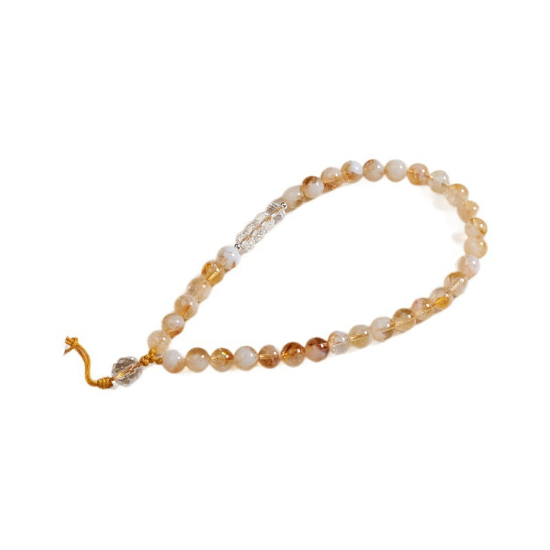 Confectionné avec un véritable cristal de quartz jaune de haute qualité, il peut servir à la fois de bracelet ajustable et de breloque pour sac, vous assurant ainsi que son énergie positive vous accompagne toujours.