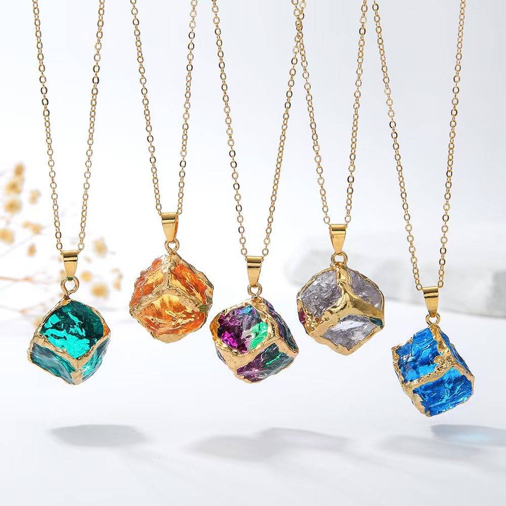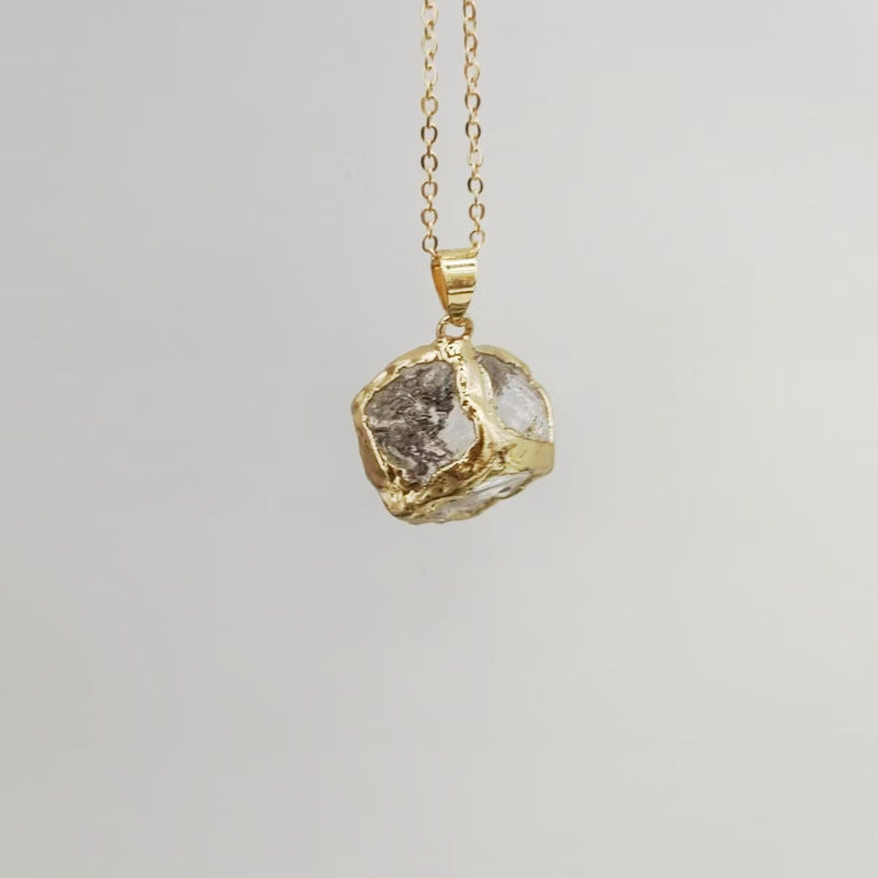 Channel natural harmony with our Irregular Natural Gemstone Chip Pendant. This 19x19mm pendant features a mix of raw, unpolished crystal chips set in a warm gold-plated brass rim, celebrating the beauty of imperfection.